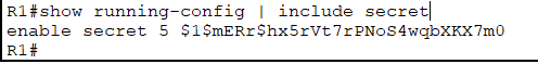 R1(config)#enable secret cisco // enable 즉, 관리자 모드로 들어가기 위한 암호를 cisco로 지정한다.