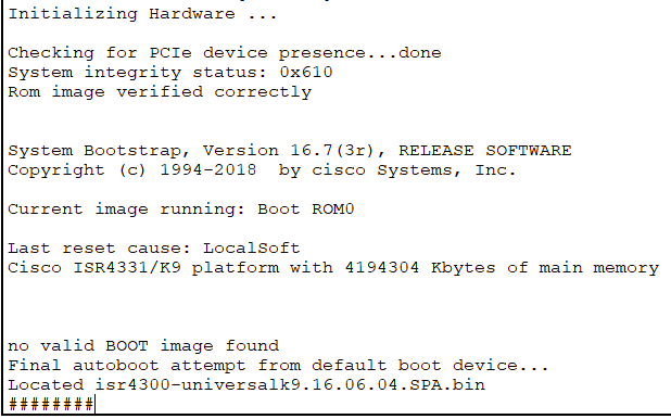 Please answer 'yes' or 'no', Would you like to enter the initial configuration dialog?[yes/no]: no // setup 모드 (잘 설정하지 않음)