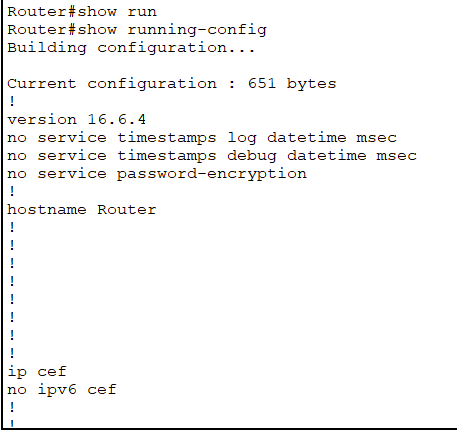 show running-config 명령어는 설정 내용 중 기본값이 아닌 것들이 주로 보여진다.