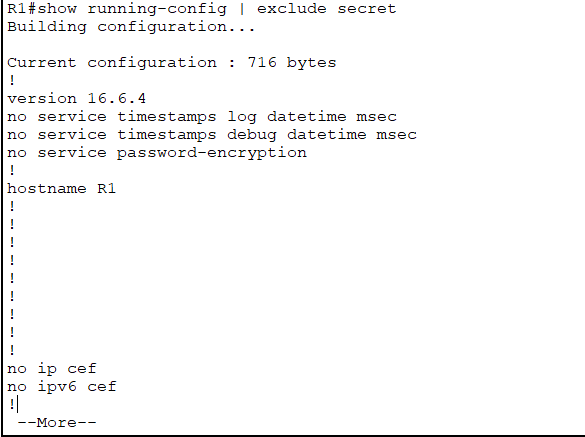 show running-config | exclude : 정규식을 포함하지 않는 출력 라인을 표시합니다.